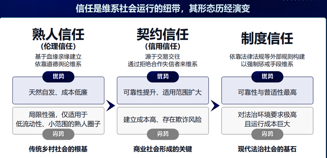 信任,如同无形的空气,维系着社会经济的运转。回望其发展脉络,我们大体上经历了三种主要形态: