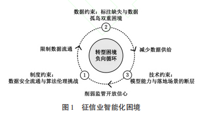 在金融强国战略与人工智能技术深度赋能的背景下,我国征信业智能化面临着制度性壁垒、数据约束效应与技术应用瓶颈三重困境。现有研究过度聚焦技术要素的局部优化,忽视了制度与数据的协同演进需求,导致行业陷入“局部优化、整体停滞”的恶性循环。