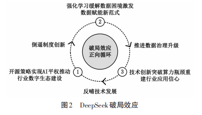 总的来说,如图2所示,DeepSeek-R1大模型的出现全面打破了当前“数据、技术、制度”的恶性循环制约,有效推动了人工智能技术的普及,通过降低算力成本和应用门槛,触发全行业应用场景的规模化落地。进而凸显出数据要素的战略地位,倒逼机构加速推进数据治理体系升级,典型表现为业务决策思维链标注与多源异构数据整合,进一步释放数据价值。数据价值的释放客观上要求制度层面的适应性变革,由此形成技术创新、价值释放、制度演进的协同进化机制。