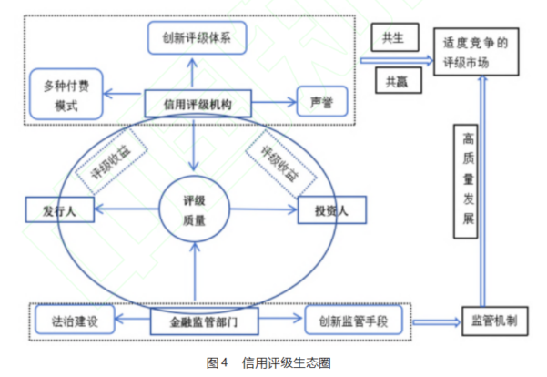破解信用评级行业困境,需构建系统化的解决方案,形成发行人、投资人、信用评级机构和监管人共存共生共赢的信用评级生态圈(见图4),要立足于中国实际,形成有中国特色的信用评级发展模式。